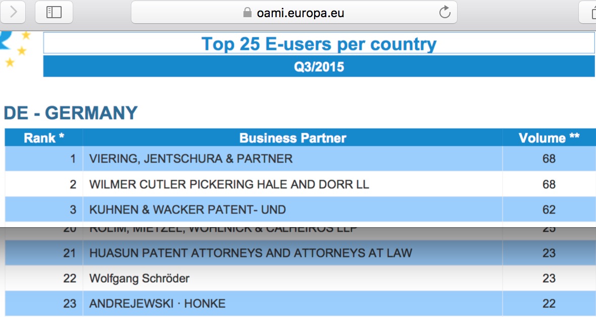 2015-11-04: 我所欧盟外观设计和欧盟商标电子提交数量在德国排名第21位