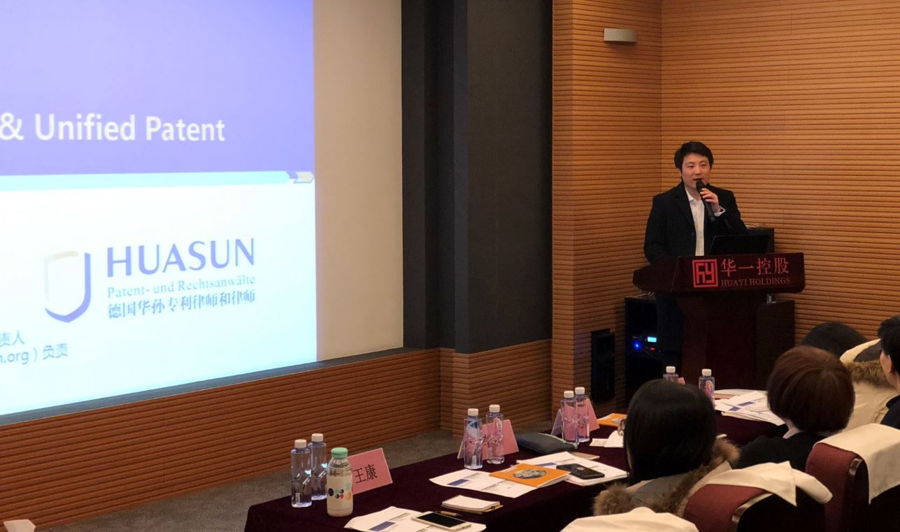 在研讨会上,我所负责人孙一鸣先生(德国专利律师、欧洲专利律师、欧洲商标和外观设计律师)向参会者介绍了欧洲和德国知识产权申请和保护的知识,并当场解答了他们提出的问题。