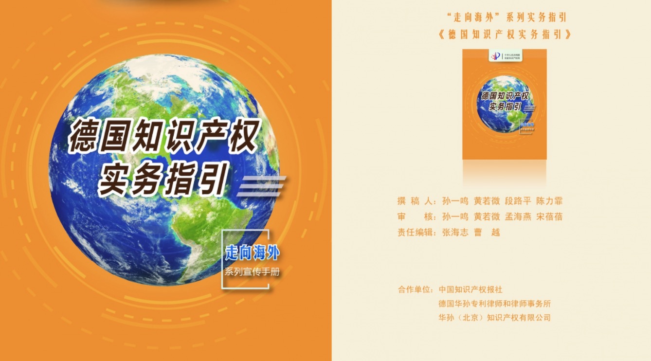 由中国国家知识产权局保护协调司牵头主持、德国华孙专利律师和律师事务所(华孙慕尼黑办公室)和华孙(北京)知识产权有限公司(华孙北京办公室)负责撰写、中国知识产权报社共同合作的《德国知识产权实务指引》于今日正式发布。