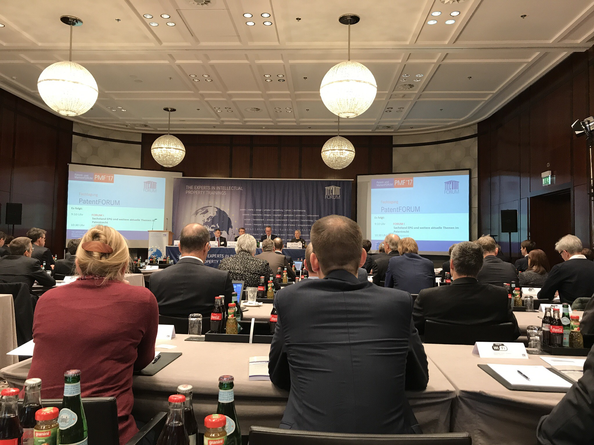 2017年11月23日,我所负责人孙一鸣出席了于慕尼黑举办的第37届专利论坛专家会议(Fachtagung PatentForum im Rahmen des 37. Patent- und MarkenFORUMs)。百余位专利从业人士参加了此次为期一天的活动。